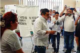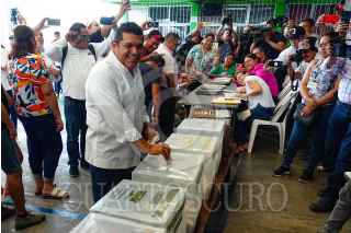 COMALCALCO, TABASCO, 02JUNIO2024.- Javier May, candidato de Javier May, candidato a la gubernatura de Tabasco por la coalición Sigamos Haciendo Historia, durante la emisión de su voto en el Municipio de Comalcalco. FOTOS: ROGELIO MORALES /CUARTOSCURO.COM
