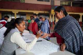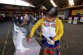 NAHUATZEN, MICHOACÁN, 02JUNIO2024.- Habitantes de comunidad indígena de Comachuén salieron hoy a ejercer su de derecho al voto en una jornada en donde se elegirá a nueva o nuevo Jefe del Ejecutivo. FOTO: JUAN JOSÉ ESTRADA SERAFÍN/CUARTOSCURO.COM