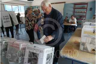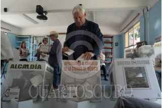 CIUDAD DE MÉXICO, 02JUNIO2024.- Víctor Villalobos Arámbula, titular de la SADER, emitió su voto en la alcaldía Miguel Hidalgo acompañado de esposa. FOTO: JUAN PABLO ZAMORA/CUARTOSCURO.COM