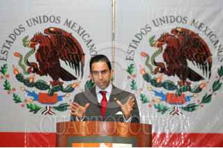 MÉXICO, D.F., 02AGOSTO2007.- Javier Lozano Alarcón, titular de la Secretaría del Trabajo, durante la conferencia de prensa que ofreció en un hotel al sur de la ciudad de México. FOTO: ISAAC ESQUIVEL/CUARTOSCURO.COM