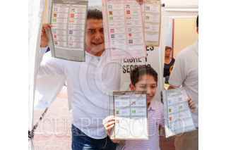CHILPANCINGO, GUERRERO, 02JUNIO2024.- Alejandro Arcos Catalán, candidato a la alcaldía de Chilpancingo por la coalición Fuerza y Corazón por México, acudió a votar con su hijo. FOTO: DASSAEV TÉLLEZ ADAME/CUARTOSCURO.COM