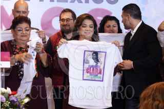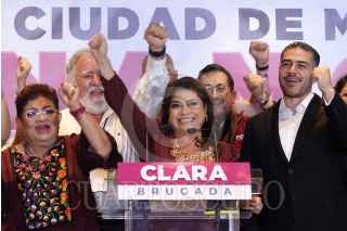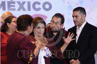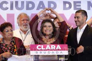 CIUDAD DE MÉXICO, 02JUNIO2024.- Clara Brugada, candidata a Jefa de Gobierno por la coalición "Sigamos haciendo Historia", acompañada de Ernestina Godoy y Omar García Harfuch, candidatos a senadores, y el senador César Craviotto conversaron durante una conferencia en la que se anunció como ganadora en las Encuestas. El acto se realizó en el Hotel Barceló. FOTO: GRACIELA LÓPEZ /CUARTOSCURO.COM