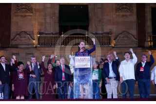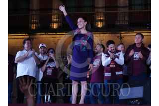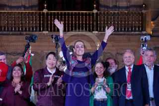 CIUDAD DE MÉXICO, 03JUNIO2024.- Claudia Sheinbaum, virtual ganadora de las elecciones presidenciales, acudió al Zócalo capitalino para celebrar el triunfo con simpatizantes de Movimiento de Regeneración Nacional (MORENA). Según cifras del PREP del Instituto Nacional Electoral, Sheinbaum Pardo obtuvo el 57? los votos. FOTO: GALO CAÑAS/CUARTOSCURO.COM