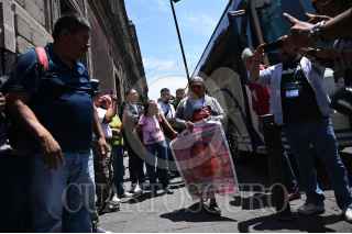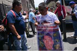 CIUDAD DE MÉXICO, 03JUNIO2024.- Los padres de los normalistas desaparecidos esperan entrar a Palacio Nacional para reunirse con el presidente. FOTO: DANIEL AUGUSTO/ CUARTOSCURO.COM