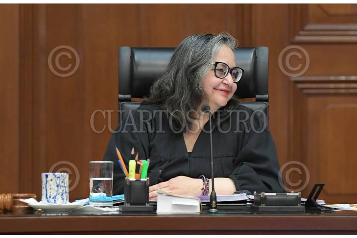 CIUDAD DE MÉXICO, 03JUNIO2024.- El pleno de la Suprema Corte de Justicia de la Nación concluyó en análisis de la impugnaciones a diversos preceptos de la Ley Federal del Derecho de Autor (LFDA). Estas disposiciones señalan que los proveedores de servicios de internet so serán responsables por los daños o perjuicios ocasionado en materia de derecho de autor siempre y cuando ellos no controlen o dirijan la conducta infractora. En la imagen la ministra presidenta Norma Piña. FOTO: SCJN/CUARTOSCURO.COM