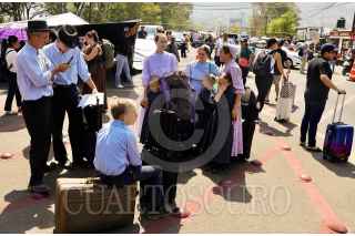 SANTA CRUZ XOXOCOTLÁN, OAXACA, 04JUNIO2024.- Esté día integrantes de la Sección 22 de la Coordinadora Nacional de Trabajadores de la Educación (CNTE) cerraron los accesos al Aeropuerto Internacional de Oaxaca de manera indefinida ante la suspensión de la mesa de negociación que tenían programada para hoy con el presidente de la República, Andrés Manuel López Obrador. Decenas de pasajeros permanecen varados, la administración del Aeropuerto informó que hasta el momento han sido cancelados dos vuelos, sin embargo con el transcursos de las horas la cifra irá en aumento. FOTO: CAROLINA JIMÉNEZ/CUARTOSCURO.COM