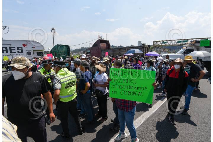 OCOYOACAC, ESTADO DE MÉXICO, 04JUNIO2024.- Vecinos de Ocoyoacac bloquearon la carretera Toluca-México en la entrada de este municipio exigiendo la reposición de la elección y mostraron su descontento por la victoria de Nancy Valdez Ruiz, candidata del PVEM, MORENA y PT, hermana del actual alcalde, denuncian fraude y robo de boletas, entre otras irregularidades que se dieren durante la elección. FOTO: CRISANTA ESPINOSA AGUILAR /CUARTOSCURO.COM