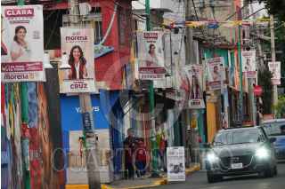 CIUDAD DE MÉXICO, 04JUNIO2024.- Decenas de lonetas y rótulos siguen visibles en calles de la alcaldía Iztapalapa a pesar de que en otras alcaldías y avenidas principales de la capital comenzaron con brigadas de limpieza y retiro propaganda electoral. FOTO: GRACIELA LÓPEZ /CUARTOSCURO.COM