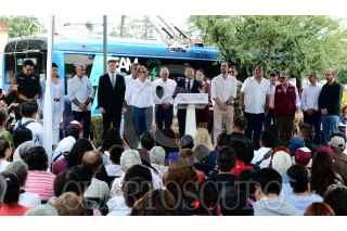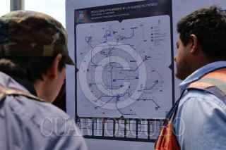 CIUDAD DE MÉXICO, 04JUNIO2024.- Usuarios de transportes públicos observan el mapa del programa "Movilidad Integrada de la Ciudad de México" después de la inauguración de la Línea 12 del Trolebús. FOTO: ALICE MORITZ/CUARTOSCURO.COM