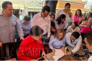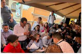 CUERNAVACA, MORELOS, 05JUNIO2024.- Conferencia de prensa de Lucia Meza, quien contendió a la gubernatura de Morelos por la coalición "Por la Seguridad y Dignidad de Morelos, Vamos todos" integrada por el PRI, PRD, PAN y el partido local Redes Sociales Progresistas, anuncio que cuenta con pruebas para pedir que la elección se anule. Al final de la conferencia llegaron al sitio agentes de la Fiscalía Especializada en el Combate a la Corrupción, quienes le notificaron una denuncia en su contra, sin que se conozca detalles de ella. FOTO: ESPECIAL/CUARTOSCURO.COM