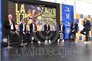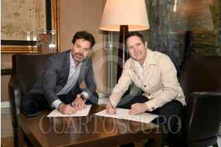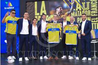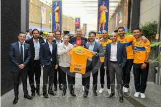 CIUDAD DE MÉXICO, 06JUNIO2024.- Con la presencia de Ricardo Salinas Pliego, Christian Martinoli y Luis García se realizó la firma con el Club Tigres para que sus juegos sean transmitidos por TV Azteca. Por parte del club regio asistieron Diego Laynez, André-Pierre Gignac y Juan Pablo Vigón. FOTO: TV AZTECA/CUARTOSCURO.COM