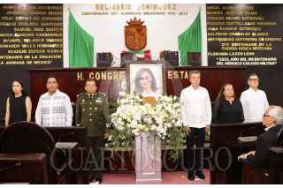 TUXTLA GUTIÉRREZ, CHIAPAS. 07JUNIO2024.- Homenaje póstumo a Rosalinda López Hernández, esposa del Gobernador de Chiapas; Rutilio Escandón, en la sede del DIF. Ahí recibio el pésame de familiares funcionarios y amigos el mandatario local. Posteriormente en el Congreso del Estado Rutilio Escandon, encabezo una sesión solemne a su esposa acaecida el pasado 5 de este mes. FOTO: ISABEL MATEOS/CUARTOSCURO.COM
