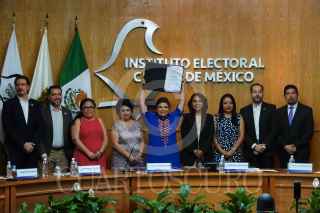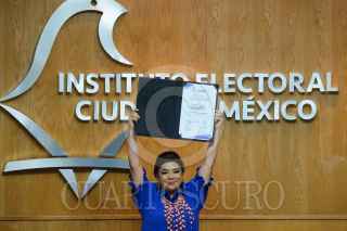 CIUDAD DE MÉXICO, 08JUNIO2024.- Patricia Avendaño, Consejera Presidenta del Instituto Electoral de la Ciudad de México, hizo entrega de la constancia de mayoría que acredita a Clara Brugada Molina cómo la jefa de Gobierno electa de la Ciudad de México. FOTO: GALO CAÑAS/CUARTOSCURO.COM