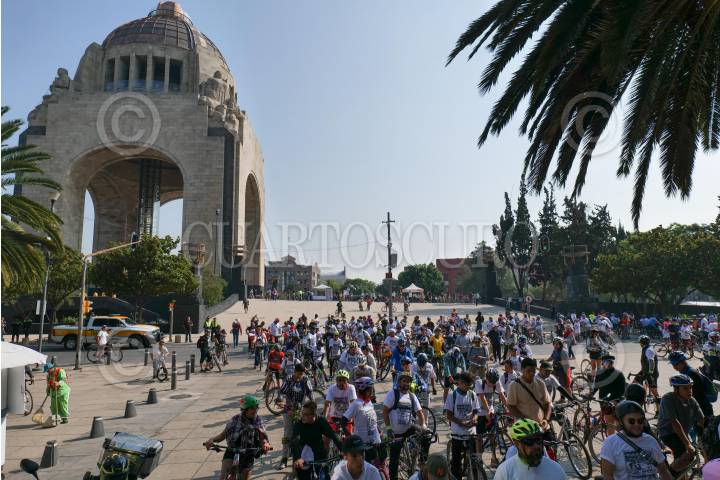 CIUDAD DE MÉXICO, 08JUNIO2024.- Varios ciclistas se reunieron para esperar el comienzo de la Gran Rodada en el Monumento a la Revolución que concluyó en el Parque Bicentenario en Azcapotzalco, para celebrar el Dia Mundial de la Bicicleta 2024. FOTO:ALICE MORITZ/CUARTOSCURO.COM