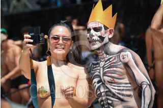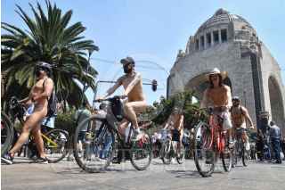 CIUDAD DE MÉXICO, 08JUNIO2024.- Cientos de personas participaron en la decimoséptima rodada ciclista al desnudo que tiene como objetivo concientizar a los automovilistas y peatones acerca del respeto a las bicicletas como sistema de transporte. FOTO: MARIO JASSO/CUARTOSCURO.COM