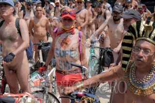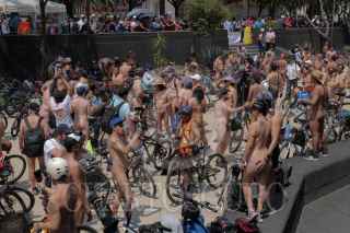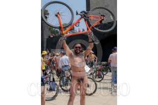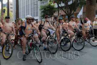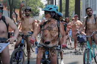 CIUDAD DE MÉXICO, 08JUNIO2024.- Un hombre espera la salida de la rodada nudista en el Monumento de la Revolucón, que busca promover el uso de la bicicleta y el respeto a quienes las usan para transportarse en espacios urbanos. FOTO:ALICE MORITZ/CUARTOSCURO.COM