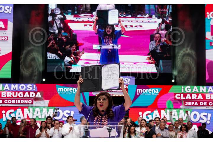 CIUDAD DE MÉXICO, 08JUNIO2024.- Clara Brugada, Jefa de Gobierno electa de la Ciudad de México, y Claudia Sheinbaum, virtual presidenta electa de México, encabezaron el evento de agradecimiento y celebración, en la Arena México, tras la entrega de la constancia de mayoría a Brugada Molina como jefa de gobierno de la Ciudad de México. FOTO: GALO CAÑAS/CUARTOSCURO.COM