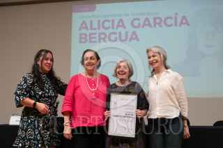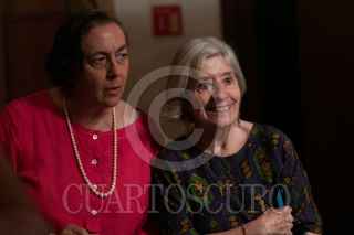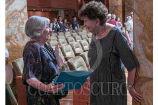 CIUDAD DE MÉXICO, 09JUNIO2024.- Las escritoras Alicia García Bergua y Margo Glantz conversan al finalizar la ceremonia en donde se reconoció el trabajo de la primera, en el Palacio de Bellas Artes. FOTO: MOISÉS PABLO/CUARTOSCURO.COM