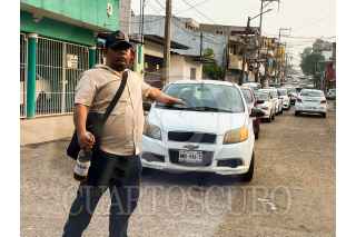 VILLAHERMOSA, TABASCO. 10 JUNIO2024.- Con caguama en mano un hombre dirige el tráfico en Carlos Green, una avenida congestionada por falta de elementos de tránsito. FOTO: LUIS LÓPEZ/CUARTOSCURO.COM