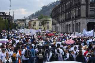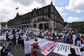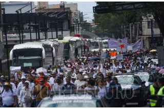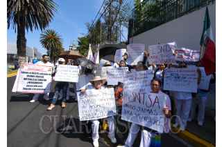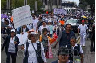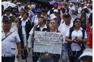 TOLUCA, ESTADO DE MÉXICO, 10JUNIO2024.- Más de 6 mil trabajadores de salud integrantes del Sindicato Nacional de Trabajadores de la Secretaría de Salud (SNTSA) marcharon por las principales calles de Toluca exigiendo la renuencia de la Secretaría de Salud estatal Macarena Montoya Olvera, basificación de personal de contrato, sueldos dignos, insumos médicos, medicamentos, materiales de curación para brindar una buena atención a los pacientes, partieron del Monumento a la Bandera y llegaron a Palacio de Gobierno. FOTO: CRISANTA ESPINOSA AGUILAR /CUARTOSCURO.COM