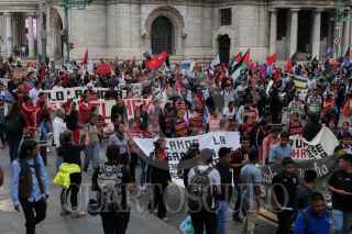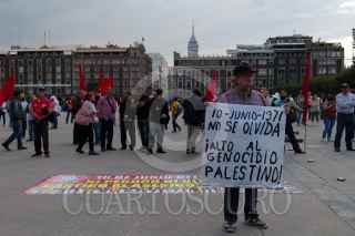 CIUDAD DE MÉXICO,10JUNIO2024.- Un hombre participa a la manifestación que conmemora la matanza del 10 de Junio 1971, y lucha en contra del genocidio en Palestina. FOTO:ALICE MORITZ/CUARTOSCURO.COM