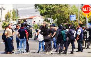 MORELIA, MICHOACÁN. 11JUNIO2024. Un grupo de policías de la Guardia Civil (GC), de la Secretaría de Seguridad Pública de Michoacán se manifestaron para exigir sueldos justos, respeto a sus prestaciones y equipamiento. Los uniformados indicaron que han sido víctimas de abusos por parte de sus mandos, así como descuentos en sus sueldos. Además hicieron referencia al pago Banbajio donde no se les ha aumentado, en ocasiones se les ha negado el pago, así como el bono denominado «tractor». Mencionaron que temen salir a las calles a cuidar a la población ante la carencia de equipo, entre ello armamento y municiones. Los policías bloquearon los 4 accesos a la SSP y bloquearon ambos carriles del libramiento al exterior de la dependencia. FOTO: JUAN JOSÉ ESTRADA SERAFÍN /CUARTOSCURO.COM