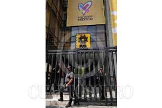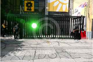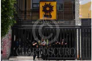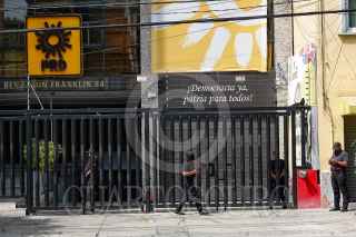 CIUDAD DE MÉXICO, 12JUNIO2024.- Supuestos elementos de seguridad privada reguardan el edificio que fungía como sede nacional del Partido De la Revolución Democrática (PRD), esto luego de que se notificara su pérdida de registro como partido político. FOTOS: ROGELIO MORALES /CUARTOSCURO.COM