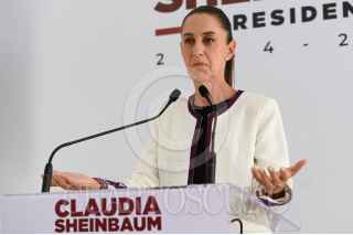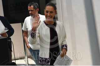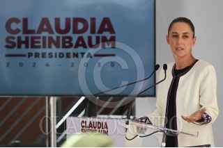 CIUDAD DE MÉXICO, 12JUNIO2024.- Claudia Sheinbaum, virtual presidenta electa, se despide de la prensa luego de ofrecer un mensaje en su casa de transición. FOTO: DANIEL AUGUSTO/ CUARTOSCURO.COM