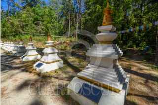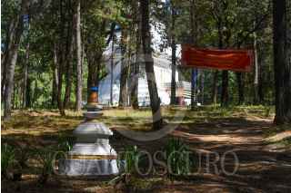 VALLE DE BRAVO, ESTADO DE MÉXICO, 12JUNIO2024.- Los bosques de Valle de Bravo en la localidad de San Mateo Acatitlán alberga la Gran Stupa Bön para La Paz Mundial, considerada la más grande construida en Occidente, con una altura de 34 metros, siendo la segunda edificada en México, Geshe Tenzin Wangyal Rinpoche inició este centro espiritual y en el 2010 fue consagrada por los maestros Yongdzin Tenzin Namdak Rinpoche, Khenpo Tenpa Yundrung Rinpoche. Un lugar que invita a la reflexión y meditación. FOTO: CRISANTA ESPINOSA AGUILAR /CUARTOSCURO.COM
