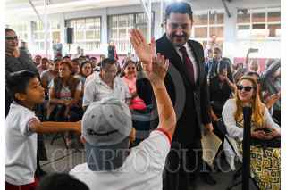 CIUDAD DE MÉXICO. 12JUNIO2024.- Martí Batres Guadarrama; jefe de Gobierno de la Ciudad entrego obras de mejoramiento a la escuela primaria "Bandera Nacional", la cual se encuentra en la Alcaldía Iztapalapa. FOTO: GOBIERNO DE LA CIUDAD/CUARTOSCURO.COM