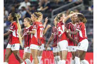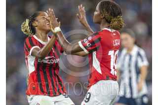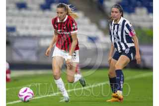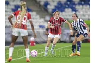 GUADALUPE, NUEVO LEÓN, 12JUNIO2024.- Daniela Solís de las Rayadas del Monterrey, se disputa el balón con Julie Piga, en el estadio BBVA, partido amistoso. Marcador Final: Rayadas: 0 - AC MILLAN: 4. FOTO: CUARTOSCURO.COM