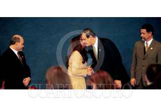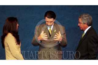 La diputada federal del PRD Alejandra Barrales se despide del primer mandatario Vicente Fox en la conformación de la mesa directiva de la Asociación de Sobrecargos. FOTO: Victoria Valtierra/CUARTOSCURO.COM