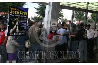 MÉXICO, D.F., 04AGOSTO2007.- Musicos y cantantes de blues rindieron esta noche en el centro cultural Ollin Yoliztlin un homenaje al fundador y lider de la banda Real de catorce José Cruz a quien se le diagnostico Esclerosis multiple. En decenas de personas que se quedaron sin boleto pretendiar pasar burlando la seguridad, hazaña conocida como el "portazo". FOTO: SAÚL LÓPEZ/CUARTOSCURO.COM