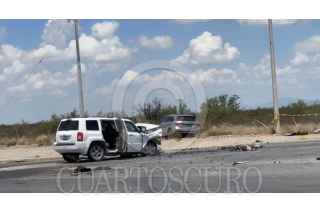MONCLOVA, COAHUILA, 14JUNIO2024.- El Equipo de avanzada de Claudia Sheinbaum, presidenta electa, tuvo un fuerte percance vehicular contra una camioneta Patriot mientras circulaba por el Libramiento Eliseo Mendoza Berrueto. A consecuencia del impacto una mujer que viajaba como copiloto en la camioneta murió de manera instantánea mientras que parte del equipo de Sheinbaum resultó lesionado. Sheinbaum detuvo su marcha para verificar la situación, antes de continuar hacia su reunión programada a las 13 horas con Andrés Manuel López Obrador, presidente de México. FOTO: REDES SOCIALES/CUARTOSCURO.COM