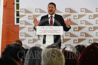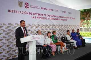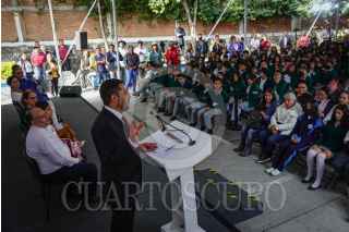 CIUDAD DE MÉXICO, 14JUNIO2024.- Martí Batres, jefe de Gobierno de la Ciudad de México, durante la entrega de obras en la secundaria 256 Delegación Coyoacan, donde anuncio sobre los trabajos para la instalación de Sistemas de Captación de Agua de Lluvia en todas las Primarias y Secundarias Públicas de la Ciudad de México. FOTOS: ROGELIO MORALES /CUARTOSCURO.COM