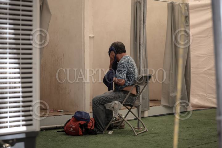 MEXICALI, BAJA CALIFORNIA, 10JUNIO2024.-Rompe Mexicali récord de calor con máximas de 47.5 grados semanas antes de iniciar oficialmente el verano. Autoridades han implementado acciones para prevenir malestares y decesos por las altas temperaturas. Cachanillas buscan sobrevivir al desierto mientras mantienes sus actividades en la intemperie. En la imagen, un hombre seca su rostro tras haberse bañado en una de las regaderas comunitarias colocadas en puntos estratégicos de Mexicali, en búsqueda de prevenir decesos por calor. JACK ÁLVAREZ/CUARTOSCURO.COM
