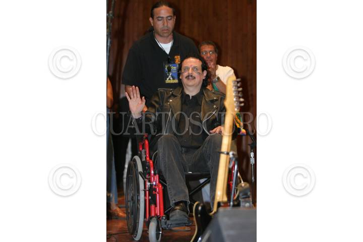 MÉXICO, D.F., 04AGOSTO2007.- Musicos y cantantes de blues rindieron esta noche en el centro cultural Ollin Yoliztlin un homenaje al fundador y lider de la banda Real de catorce José Cruz a quien se le diagnostico Esclerosis multiple. En decenas de personas que se quedaron sin boleto pretendiar pasar burlando la seguridad, hazaña conocida como el "portazo". FOTO: SAÚL LÓPEZ/CUARTOSCURO.COM