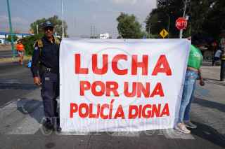 MORELIA, MICHOACÁN, 14JUNIO2024.- Un grupo de policías estatales de la Guardia Civil de Michoacán, quienes fueron acompañados por un asesor legal especializado en derecho laboral, han tomado una vez más el Periférico de Morelia a manera de protesta, para hacer oír sus peticiones ante las autoridades del estado. Bajo el lema “lucha por una policía digna”, un contingente de aproximadamente 20 individuos interrumpió el flujo vehicular en esta importante arteria. FOTO: JUAN JOSÉ ESTRADA SERAFÍN /CUARTOSCURO.COM