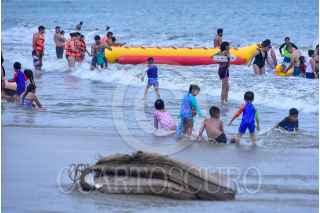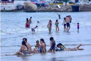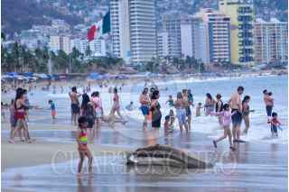 ACAPULCO, GUERRERO, 14JUNIO2024.- Turistas pasan una tarde de playa en el puerto de Acapulco, a pesar del día nublado los visitantes aprovecharon para bañarse en el mar y disfrutar de las olas. FOTO: CARLOS CARBAJAL/CUARTOSCURO.COM