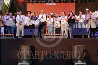 CIUDAD DE MÉXICO, 15JUNIO2024.- Clara Brugada, virtual ganadora como jefa de gobierno, durante su intervención durante el evento del Baile de la Victoria de La Cuarta Transformación en el Monumento a la Revolución, en la que participaron artistas de la talla de Willie González, Los Yaguaru, Son 14, y Gabo Revuelta. FOTOS: ROGELIO MORALES /CUARTOSCURO.COM