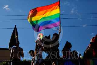 QUERÉTARO, QUERÉTARO, 15JUNIO2024.- Con una participación aproximada de 15 mil personas, este sábado se llevó a cabo la octava marcha del Orgullo y Dignidad "Celebramos las Identidades, Abrazamos la Libertad" de la comunidad LGBT+ en las calles del Centro Histórico de Querétaro. Tras el recorrido, en el que tomaron parte 30 colectivos tanto a pie como en motocicletas, automóviles y autobuses, el evento concluyó en el Jardín Guerrero en donde se realizaron diversas actividades y se exigió un alto a los diversos tipos de violencia que enfrenta este sector. FOTO: CÉSAR GÓMEZ/CUARTOSCURO.COM