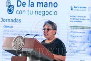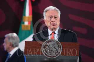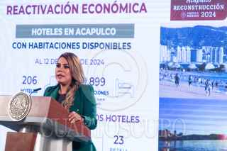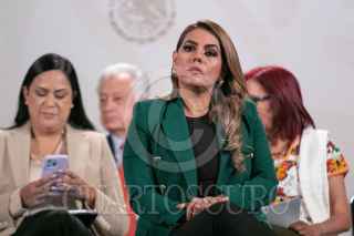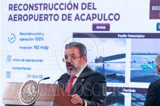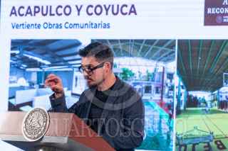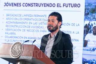 CIUDAD DE MÉXICO, 17JUNIO2024.- Marath Baruch Bolaños, secretario del Trabajo, durante su intervención en la mañanera, en la cual se habló sobre los avances de la reconstrucción de Acapulco y Coyuca de Benítez, esto a casi 300 días del paso del huracán Otis que devastó estás zonas. FOTO: MOISÉS PABLO/CUARTOSCURO.COM