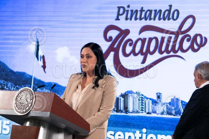 CIUDAD DE MÉXICO, 17JUNIO2024.- Ariadna Montiel, secretaria del Bienestar, muestra la campaña "Pintando Acapulco", que busca mejorar la imagen del puerto, esto a varios meses del huracán Otis en Acapulco y Coyuca de Benítez, durante la mañanera. FOTO: MOISÉS PABLO/CUARTOSCURO.COM