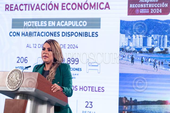 CIUDAD DE MÉXICO, 17JUNIO2024.- Evelyn Salgado, gobernadora de Guerrero, habla de los avances de la reactivación económica, esto a varios meses del huracán Otis en Acapulco y Coyuca de Benítez, durante la mañanera. FOTO: MOISÉS PABLO/CUARTOSCURO.COM