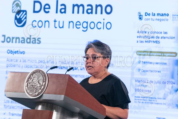 CIUDAD DE MÉXICO, 17JUNIO2024.- Raquel Buenrostro, titular del Sistema de Administración Tributaria (SAT), habla sobre los programas que se han implementando para apoyar a los comercios y negocios, esto a varios meses del paso devastador del huracán Otis en Acapulco y Coyuca de Benítez, durante la mañanera. FOTO: MOISÉS PABLO/CUARTOSCURO.COM