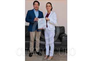 CIUDAD DE MÉXICO, 17JUNIO2024.- Mario Delgado, dirigente de Morena, le entrego los resultados de la encuesta sobre la Reforma al Poder Judicial a Claudia Sheinbaum, Presidenta Electa. Según los resultados la mayoría de los mexicanos respaldan la decisión de que los jueces sean elegidos por voto popular. FOTO: PRENSA CLAUDIA SHEINBAUM/CUARTOSCURO.COM