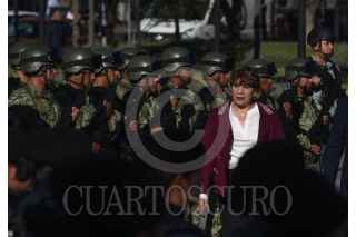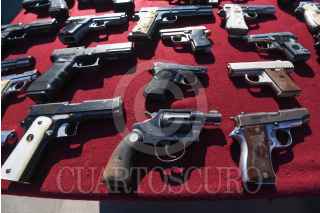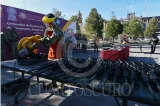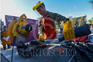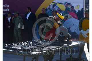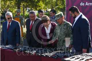 TOLUCA, ESTADO DE MÉXICO, 17JUNIO2024.- La Secretaria de la Defensa Nacional a través de la Comandancia de la 22/a Zona Militar realizó la Ceremonia de Destrucción de Armas de Fuego en coordinación con el Gobierno del Estado de México, fueron destruidas 54 armas largas y 28 armas cortas aseguradas por el Ejército Mexicano, Guardia Nacional Autoridades Policiacas del Edoméx. La ceremonia estuvo encabezada por la Gobernadora Delfina Gómez Álvarez, José Martín de la Luz comandante de la 22a Zona Militar, Horacio Duarte, Secretario General de Gobierno, Andrés Andrade Téllez, Secretario de Seguridad, José Luis Cervantes Fiscal General de Justicia del Estado de México. FOTO: CRISANTA ESPINOSA AGUILAR /CUARTOSCURO.COM