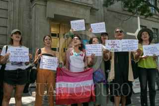 CIUDAD DE MÉXICO, 17JUNIO2024.- Activistas de la comunidad trans se manifestaron afuera de la Suprema Corte de Justicia de la Nación (SCJN) para exigirle a los ministros que se pronuncien por el derecho de las personas transexuales de poder acceder a los baños de género neutro, ya que denunciaron que en muchos centros comerciales (como el de Reforma 222) han sido discriminados por personal de seguridad. FOTO: MOISÉS PABLO/CUARTOSCURO.COM