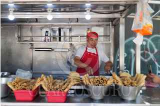CIUDAD DE MÉXICO, 17JUNIO2024.- Un señor prepara quesadillas y flautas en un puesto callejero. FOTO: ALICE MORITZ/CUARTOSCURO.COM