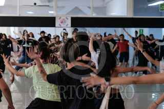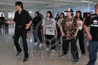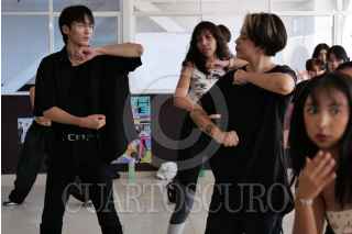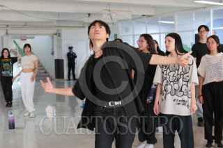 CIUDAD DE MÉXICO, 18JUNIO2024.- Jay Kim, coreógrafo y bailarín de Corea Del Sur, explica un paso de baile a unos jóvenes durante un taller de K-Pop en el Instituto de Juventud. FOTO: ALICE MORITZ/CUARTOSCURO.COM